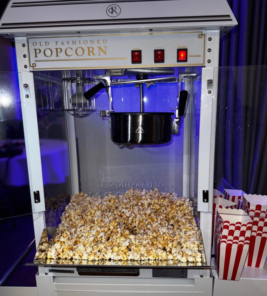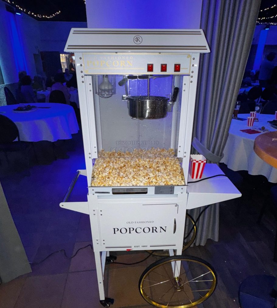 Unsere stilvolle Popcornmaschine im eleganten Retro-Design sorgt nicht nur für frisches, duftendes Popcorn, sondern auch für echtes Kino-Feeling auf Ihrer Veranstaltung.